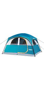 Outside mesh window with inside waterproof 185T polyester rainfly to keep water from going inside the tent and covering the tent body for privacy.