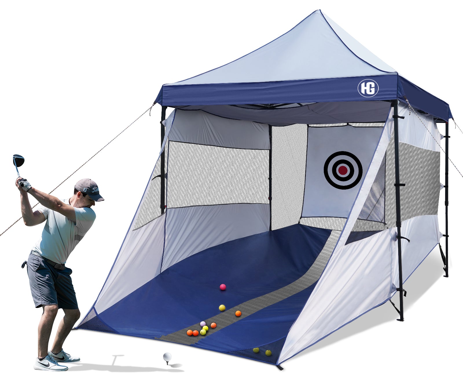 HG 8x8 Pop Up Canopy Tent with 2-in-1 Golf Practice Hitting Net & Canopy Tent, Heavy Duty Driving Pitching Nets with Frame and Target