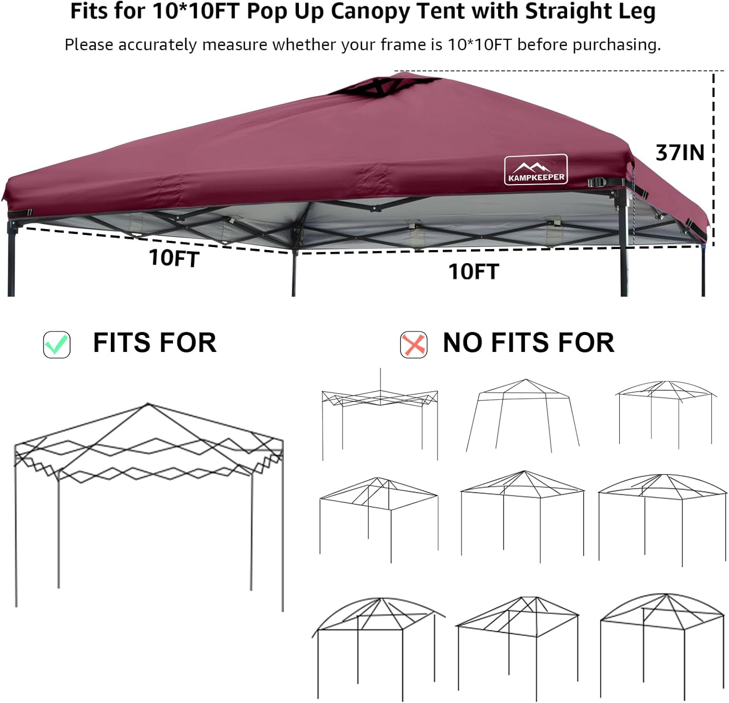KAMPKEEPER 10x10 Replacement Top Pop Up Canopy Tent Top Cover Roof with Air Vent and Adjustable Elastic Strap, Polyester UV Waterproof for Outdoor Garden Patio Pavilion Sun Shade(Top Only) (Red)