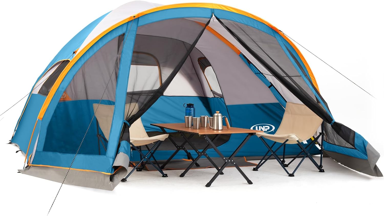 UNP Camping Tent with Screen Room, Portable 6 Person Camping Tent with Screen Porch, Family Dome Tent for Camping Outdoor - 14'x11'x72''(H)